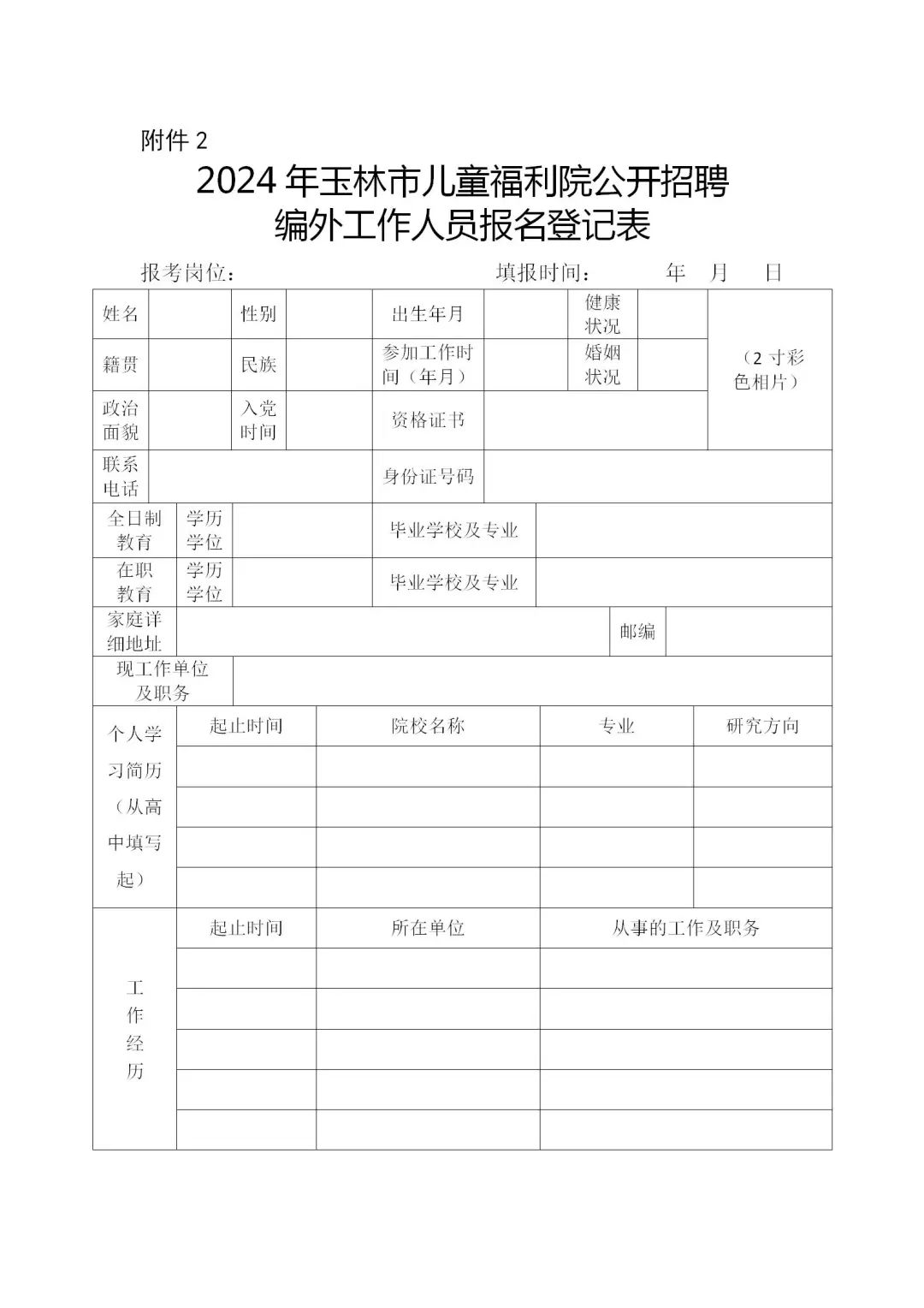 2024年玉林市玉林市儿童福利院公开招聘编外工作人员报名登记表